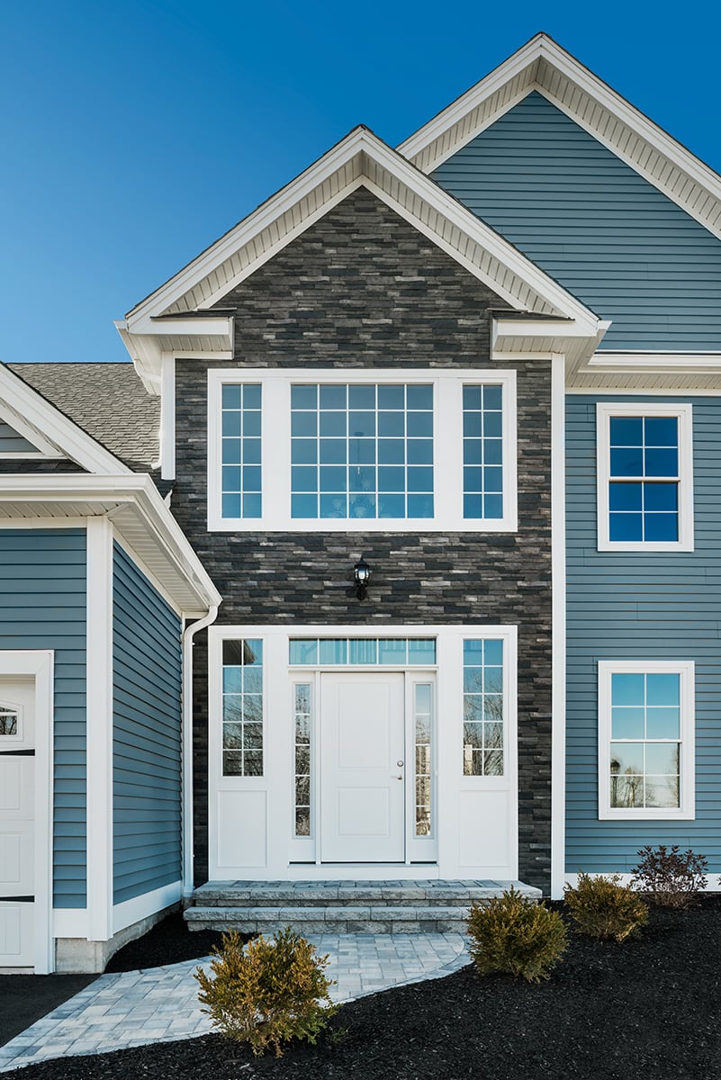 Yes. Its high-tech composite construction complements a wide range of siding materials including fiber cement, vinyl, stucco, and brick.